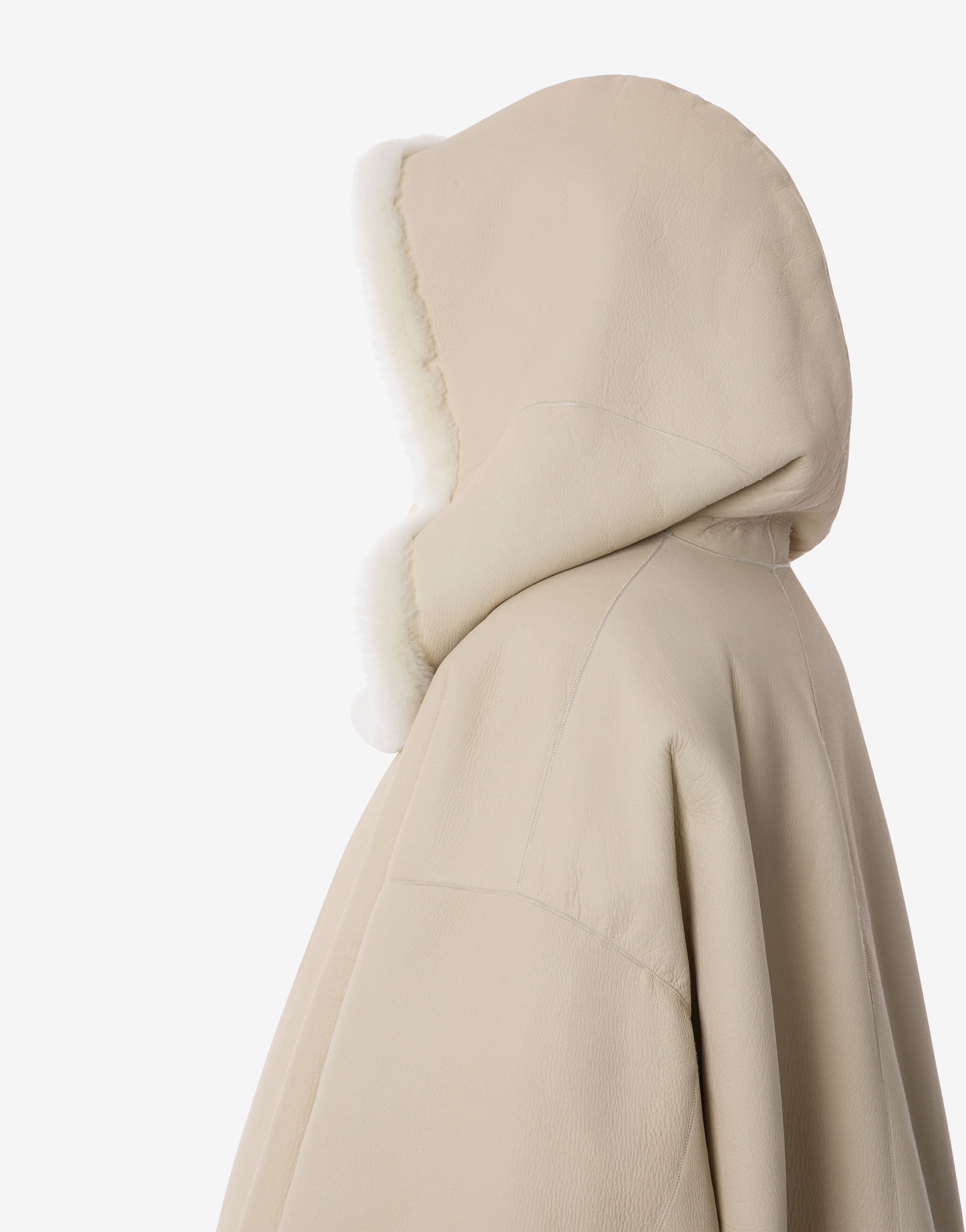 Per stare al caldo. Capospalla davvero versatile, questa giacca chic in shearling è reversibile, offrendo due look in uno per adattarsi a ogni occasione. Le maniche ampie e il taglio squadrato creano una silhouette moderna e sofisticata, mentre il comodo cappuccio garantisce calore e protezione nelle giornate più fredde. Un capo pratico e di tendenza, perfetto da indossare sopra qualsiasi outfit per un’eleganza immediata.